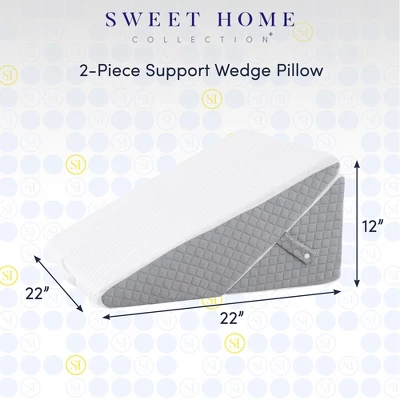 Discover the ultimate comfort and support with the Sweet Home Collection 2-Piece Wedge Pillow Set. Crafted with CertiPUR-US certified memory foam, this pillow is non-toxic, BPA-free, and ensures a safe and cozy experience. Strike the perfect balance between softness and firmness for your optimal comfort needs. Ideal for addressing acid reflux, snoring, post-surgery recovery, pregnancy discomfort, GERD, allergies, and more. Conveniently detachable 2-Piece Set will allow you to utilize each piece separately to your comfort level. Elevate your comfort with its high-density memory foam and enjoy added convenience with a carrying handle, removable zipper cover, and non-slip backing. Experience relief from knee pain, neck pain, headaches, shoulder tension, back pain, allergies, and congestion. Indulge in superior comfort and functionality while promoting improved circulation. Enjoy the ease of machine-washable cover for effortless maintenance. Say goodbye to discomfort and hello to blissful relaxation with the Sweet Home Collection 2-Piece Wedge Pillow Set.