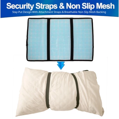 - FLEXIBLE STRAPS SECURES TO PILLOW FOR UNINTERRUPTED SLEEP: No more adjusting or repositioning during the night. With our innovative flexible straps, the Cooling Pillow Pad remains firmly attached to any pillow type, ensuring consistent cooling and maximum comfort, leading to undisturbed sleep. Pillow cooling pad 2 straps also enable this to be rolled up securely for storage or easy travel.