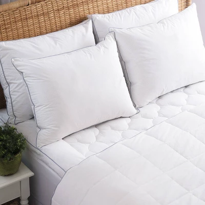 The Allied Home PerfectCool Thermoregulating Mattress Pad will enhance your sleep experience by keeping you at a cool and comfortable temperature all night long. This innovative mattress pad features micro encapsulated Phase Change Material (PCM) that liquefies in high temperature trapping the heat inside to make you feel cooler. Made of 233TC 100% Cotton with maximum PCM temperature-regulating coverage. Filled two layers of fill: top layer of soft fiber for comfort and bottom layer of supportive and durable fiber. Constructed with a lofty cloud quilt pattern and framed border for added comfort. Finished with signature ice blue satin piping. The Allied Home PerfectCool Thermoregulating Mattress Pad is machine washable for easy care.