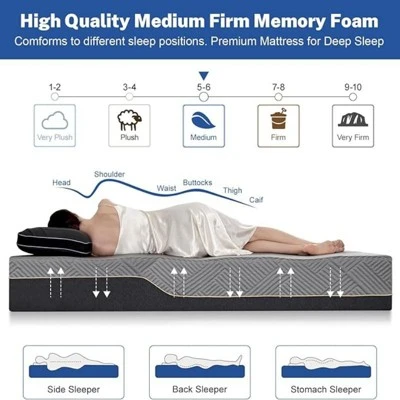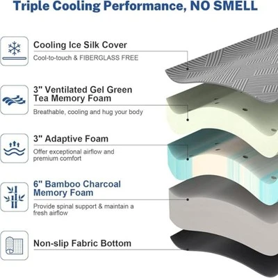 Flip mattress and two hardness levels: Just unzip the zipper and flip the bedspread, and you can choose between two hardness levels of mattresses: hard mattress and super hard mattress. Cool and comfortable all night – Are you still troubled by overly hot and sweaty nights? The “Super Cool Green Tea Mattress” is designed to help people who are prone to heat improve their sleep quality. It adopts a five-layer cooling system design, consisting of a cool-feeling ice silk pillowcase, green tea memory foam, liquid gel Coolflex foam and bamboo charcoal foam. It helps regulate body temperature, prevent overheating and bring you a cool sleep experience. Enjoy a cool night’s sleep and welcome a refreshing morning! Stress relief and contour support – You deserve a quality deep sleep. This slow-rebound hard memory foam mattress fits your figure perfectly, effectively alleviates back pain and pressure points, and generates sufficient rebound force to provide customized support for every inch of your skin. It is very suitable for those who sleep on their back, side or stomach. Say goodbye to back and spine pain. Detachable and washable ice silk bedspread – The bottom of the mattress is equipped with high-quality zippers for easy removal of the bedspread. Just put it in the washing machine and it can be cleaned quickly and easily. The fashionable black and grey bedspread is not easy to get dirty and is suitable for children and pets. Our sturdy memory foam mattresses are suitable for adjustable bed frames, floors, platforms, and various bed frames and bed bases.