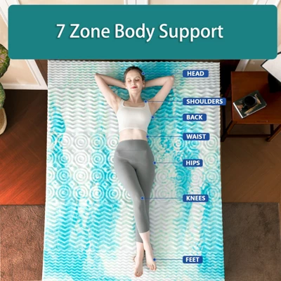 - Our memory foam mattress topper with luxurious silk cover, premier cooling egg crate gel+Bamboo support foam, no smell, 2-layer 2 Side Sleep, anti-slip&adjustable elastic straps. Our updated 2 in 1 Extra firm mattress topper for back pain, is highly suitable for people who suffer from back pain/waist pain caused by insufficient spinal support.