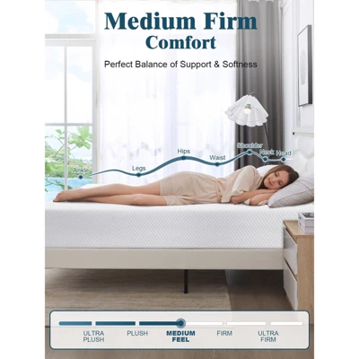 - PREMIUM MEMORY FOAM MATTRESS: Firm Mattress in a box with ice silk cover, fiberglass-free, updated 4 layers of cool gel+green tea+bamboo memory foam, 2 side cover, and Firm to Extra Firm for back pain. Experience the luxury of high-quality and in-USA High-end mattresses. It is the perfect family home gift. DOUBLE-SIDED SLEEPING: Our updated Extra Firm mattress, is more breathable and not collapsing than a traditional topper, changing the foam side can meet your firmness needs. If you are looking for a firm mattress that perfectly balances comfort and support, this would be the right one for you. UPDATED TENCEL FIBERGLASS-FREE COVER : Our green tea gel mattress features a luxurious ice silk cover, cool, and smooth, to allow you to also enjoy a safe deep sleep in summer. The other side has stylish grey fabric, soft and skin-friendly. Change the cover of the mattress according to your mood. BED MATTRES: Our high-quality memory foam bed mattress meets and standards. Fiberglass-free, no smell, unlike other poor-quality products. This foam mattress will give you and your family a healthy and great night¡¯s sleep. Luxurious 4-layer high-end mattress for easy deep sleep.