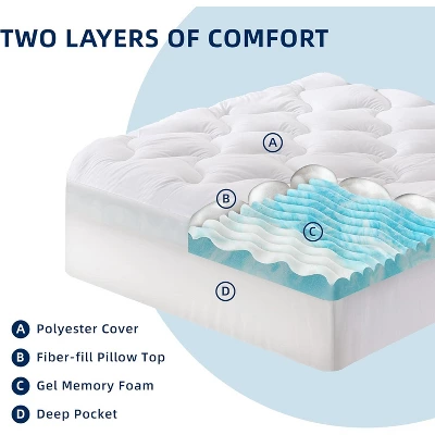 2-in-1 Dual-Layer Design: Our Dyonery pillow top mattress topper combines 2″ cooling gel memory foam with 1″ quilted snow pile. This design not only gives you a cloud-like sleeping experience but also helps relieve pressure on your back, hips, and lower body. 5-Zone Pain Relief: Our mattress topper is made with ergonomic memory foam that evenly distributes your body weight to align your spine and relieve pressure on your back. This helps improve deep sleep and overall sleep quality. Breathable & Cooling: This mattress topper features a combination of 3D breathable mesh and gel-infused foam to effectively dissipate heat, keeping you cool all night long. Safe & Easy Care: This mattress topper is OEKO-TEX and CertiPUR-US certified, with an ultra-soft snow velvet cover that’s gentle on your skin and easy to machine wash. Secure & Snug Fit: Our deep pocket design (8″-21″) ensures a tight, secure fit on any mattress. The topper is vacuum-packed and just needs 24-48 hours to fully expand, providing you with a comfortable sleep experience.
