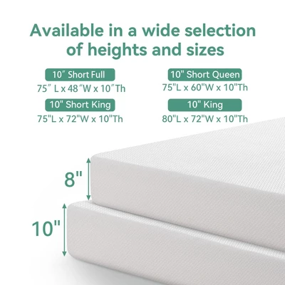 Dyonery Mattress in a Box with premier cooling gel/tea foam, fiberglass-free softer removable cover, hug your shape to soothe you to sleep. Our memory foam and fabrics have been safety evaluated to comply. The bed mattresses are perfect for your RV/Camper/Trailer/Truck, From camping to everyday living, this mattress will give you and your family a great night¡¯s sleep. Our mattress features a luxurious detailed mattress cover with new Tencel technology, softer and cooler, to allow you to enjoy a refreshing night’s sleep without waking up from overheating. Zipper near the back, machine washable. The Medium Firm Mattress conforms to the body, with breathable green tea and cooling gel memory foam to control odors, and you awake refreshed. This high-grade foam of the bottom provides spinal support and keeps the sleeper’s muscles relaxed.
