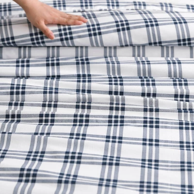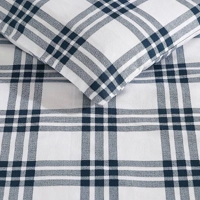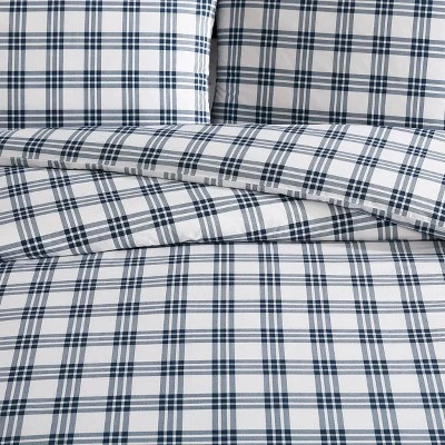 Eddie Bauer Basic Plaid Duvet Set Navy Blue