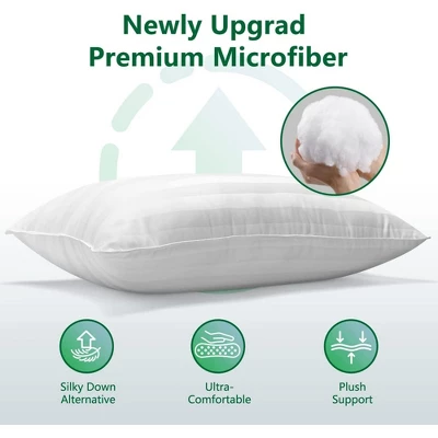 - Comfort and Supportive – This down alternative pillow is filled with premium polyester blend fiber which makes the pillows provide better softness and support.Pillow cover made of 100% peach skin shell to keep it soft and breathable.