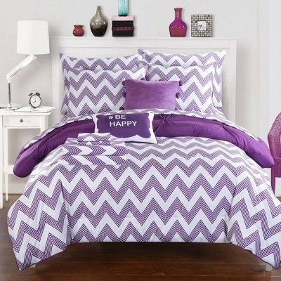 Foxville Pinch Pleated And Ruffled Chevron Print Reversible Multi Piece Comforter Set – Chic Home Design®