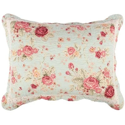 For a classic shabby chic look that will never go out of style, bring home the Antique Rose quilted pillow sham. Antique Rose, by Greenland Home Fashions, combines traditional and Victorian sensibilities with the comfort of renewable 100% cotton fibers. Featuring authentic patchwork construction, pieced, and assembled from a floral print and a pinstripe print with dainty scrolling floral embellishments, Antique Rose adds grace, charm, and beauty to any home. Finely stitched for durability with scalloped edges along its borders, Antique Rose reverses to a traditional pinstripe whole cloth print. These pillow shams feature cloth ties on either side of an envelope opening in the back to hold your pillow in place within each sham. Prewashed and preshrunk. Machine washable. Dimensions: Standard sham measures 20″x26″; All dimensions +/- 1 inch. 100% Cotton.