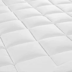 This quiet waterproof mattress pad adds a protective layer to your mattress with a 205-thread count cotton top, a cozy polyester fill in the middle and a waterproof layer of protection underneath. The quiet waterproof barrier protects your valuable mattress from spills and accidents, while its unique and quiet construction keeps this added benefit silent without sacrificing comfort. The stretchy skirt fits mattresses up to 18″ deep. Machine wash for easy care.