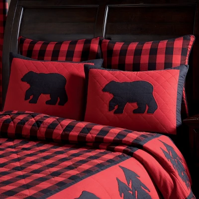 - The Buffalo Check Standard Sham features a bold red and black buffalo check design with appliqued black bear. Perfect for your lodge cabin or bedroom.