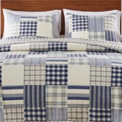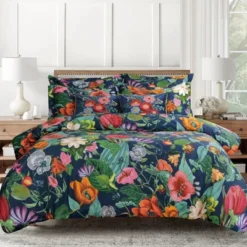Greenland Home Antique Rose Floral Pinstripe With Dainty Scrolling Embellishments Sham Standard Blue