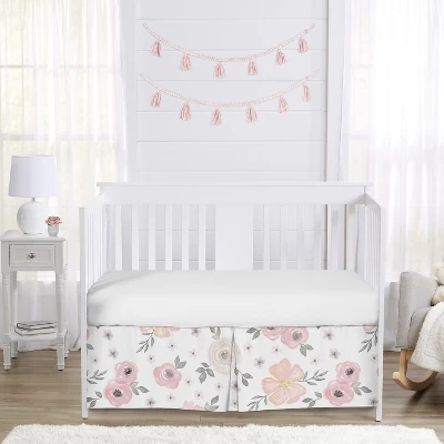 Watercolor Floral Pink and Grey Collection dust ruffle crib skirt will add a finishing touch to your nursery. Decorate any room with this stylish mix and match piece or coordinate with an existing Sweet Jojo Designs ensemble to get a complete bedding set look. Sweet Jojo Designs creates various coordinating room accessories and decor for all of their children’s bedding and nursery set collections (These items not included). Brushed Microfiber – bohemian watercolor floral print with lilies and gray and white leaves print.
