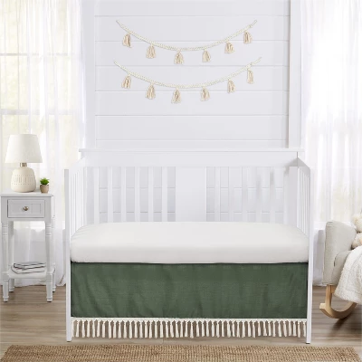 Diamond Tuft Dark Sage Green and Ivory Collection dust ruffle crib skirt will add a finishing touch to your nursery. Decorate any room with this stylish mix and match piece or coordinate with an existing Sweet Jojo Designs ensemble to get a complete bedding set look. Sweet Jojo Designs creates various coordinating room accessories and decor for all of their children’s bedding and nursery set collections (These items not included). Linen and Cotton Tassel – Solid dark sage green boho modern bohemian farmhouse southwest shabby chic designer diamond tuft with ivory off white fringe tassel.