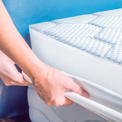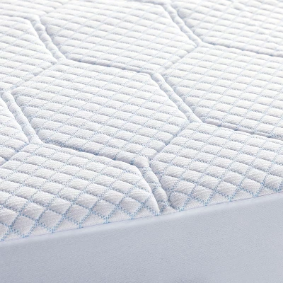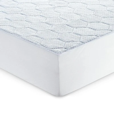 Enjoy an elevated sleep experience with the Vibe Cooling Quilted Memory Foam Mattress Pad. This mattress pad is ideal for those seeking a layer of plush comfort featuring a quarter-inch of gel-infused memory foam with a luxury cooling fabric blend cover and hexagonal quilting. The mattress pad affixes to the mattress with all around skirting and can be machine washed and dried. Unlike other fiber-filled mattress pads that wear out, this memory foam mattress pad is designed for long lasting comfort.