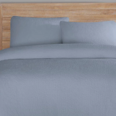 Update any décor with the simple, casual look with a soft and cozy gauze inspired texture, Vue Elements Larking 3pc Duvet Set. Full/Queen set measures 90 in x 90 in with two 20 in x 26 in standard shams. King set measures 102 in x 90 in with two 20 in x 36 in king shams. Machine Washable.