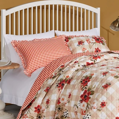 Add an irresistible layer of modern look to your bedroom with this elegant pillow sham. With country farmhouse style, the Wheatly collection from Greenland Home Fashions looks great in any home. Red and white windflowers billow in a gentle breeze on a traditional gingham check ground. A frayed edge ruffled border in ginger and red gingham completes the look. Reverses to an all-over ginger and red checkered fabric. Includes one pillow sham. A zipper along the side of each sham holds your pillow in place and makes each sham truly reversible for two looks in one. Mix and match them on the top of your bed by flipping them over. Double down on the look and buy two. Machine Wash. Imported. Machine washable. 100% Brushed microfiber face and back; polyester fill. Imported. Measures: 20″ x 26″. Color: Truffle.